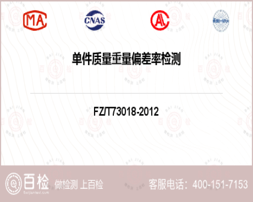 單件質(zhì)量重量偏差率檢測項目詳情1、毛針織品 FZ/T 73018-2012 5.2.7---毛針織品重量偏差項目檢測